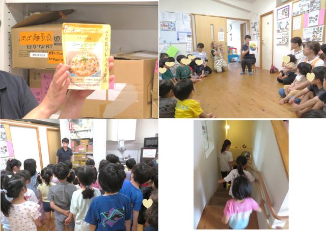 幼児クラスには、備蓄倉庫、防災食もみてもらいました。