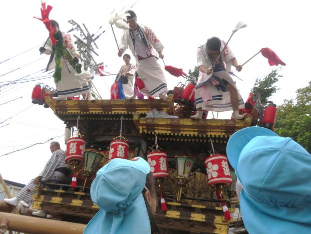 園の前まで来てくれ、だんじりは、大迫力でした!