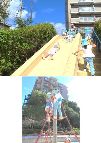 お山を登ったり、鉄棒にぶら下がったり体を沢山動かして楽しみました(*^^*)