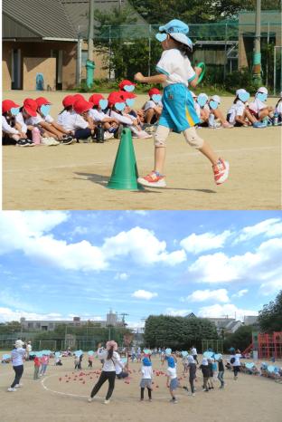 大きなグラウンドで、玉入れ、ダンス、リレーなど体を沢山動かして楽しみました。