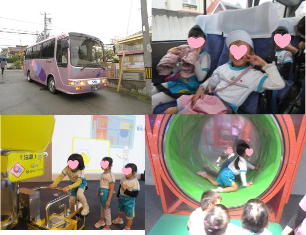 ピンクのバスに乗って、灘浜サイエンススクエアへ出発進行!