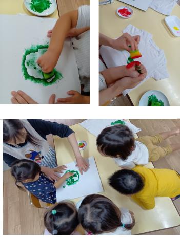 2歳児のくまグループは、はらぺこあおむしが大好きです。みんなちびっこあおむしになります。個性豊かなあおむしたち。どんなちょうちょになるのか楽しみです