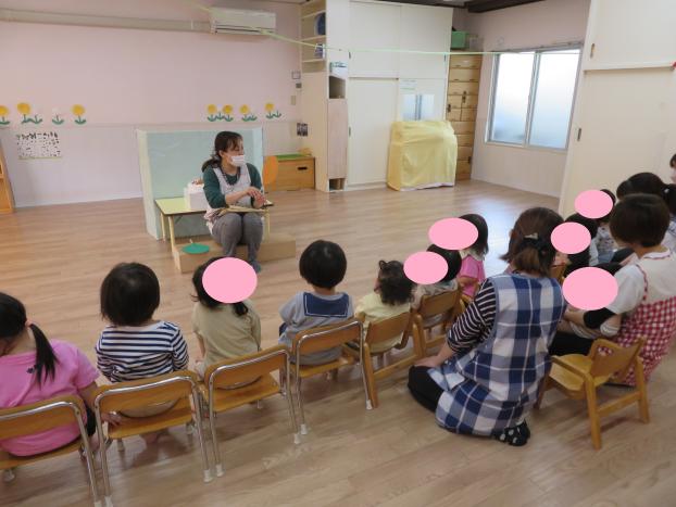 「風船」のペープサートや手品のお楽しみを見てみんなで一緒に楽しみました。