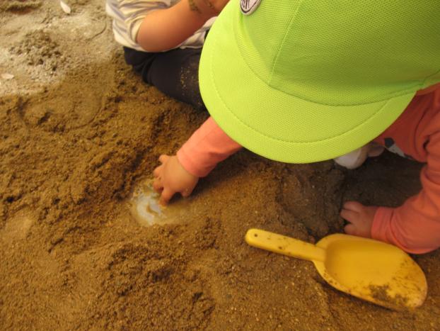 泥んこが入ったバケツに手をつけてその手でみんなにばいばいする子もいたり