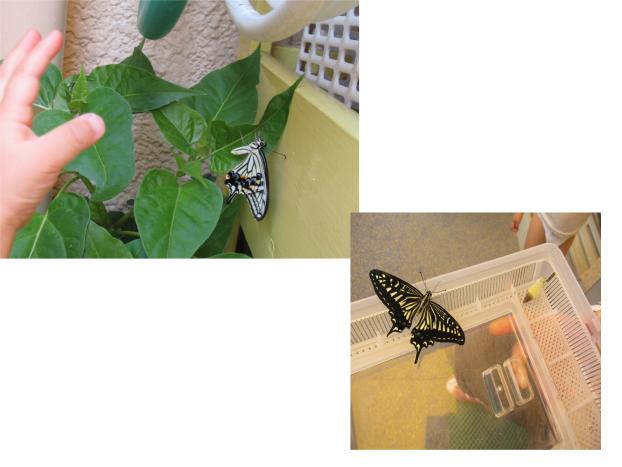 にじ組で飼育していた青虫が無事にちょうちょになりました。