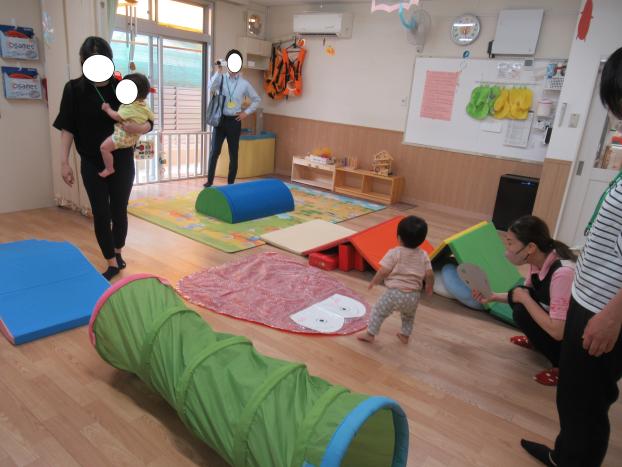 ほし組のお部屋でだるまさんのお面を使ったり、触れ合い遊び、体育遊びをして普段の遊びをお父さんお母さん達と一緒に楽しみました!