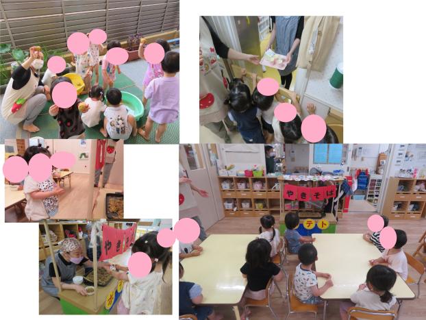 今日はおやつの時間ににじ組に屋台が登場しました。