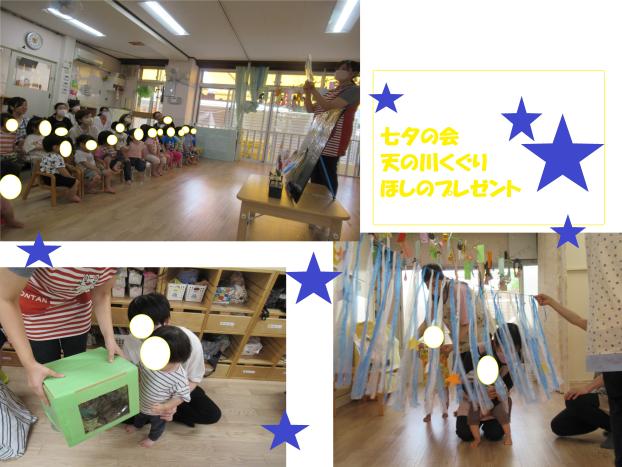 みんなドキドキしながらも天の川をくぐることができ折り紙のお星さまをプレゼントにもらいました♪