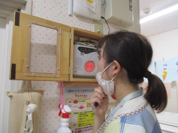 保育園にある、県警ホットラインの通報テスト・訓練をしました。