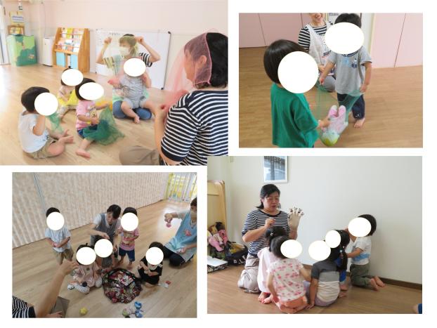 うさぎグループも布を使って「ばぁー!」と言い合ったり、一緒に歌を歌おうとしながら楽しんでいましたよ。