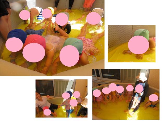 少し遠慮気味に遊び始めていましたが慣れてくると豪快に水を掛け合ったり、わにさんになって歩いたりして楽しみました。