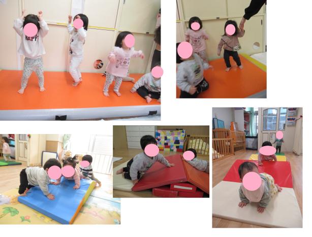 また、マットのお山で積極的に上り下りしたり、トンネルを何度もくぐったりして遊びました。
