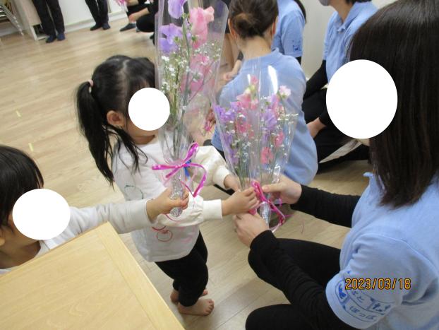 最後には、みんなで描いたお手紙とともにお花のプレゼントを渡し、お礼をしました(*^_^*)