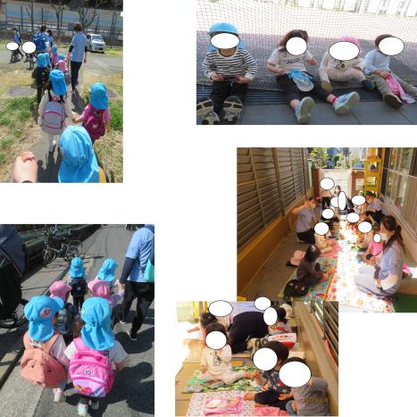 くまグループ、うさぎグループのお友だちで手を繫ぐ子もいました。