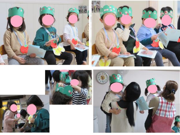 ほし組さんからは「手形のちょうちょのかわいいメダル」、にじ組うさぎグループさんからは「素敵な冠」、保健の先生から「入園した時からこんなに大きくなねカード」、給食の先生からは「給食いっぱい食べてくれてありがとうのリンゴのメダル」事務所の先生からは「保育園の思い出がいっぱいつまったDVD」をプレゼントしてもらいました✿