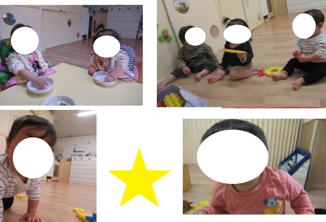 登園してお家の方と離れる時に寂しくて泣いちゃう子もいましたが、お部屋に入りお友だちをみると安心して遊びだす子もいます☆