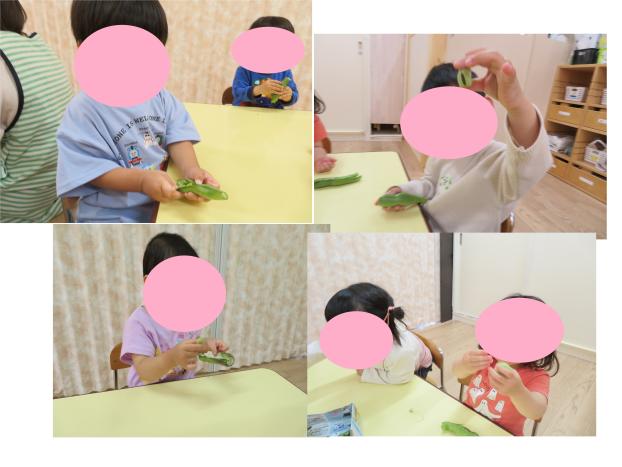 剥き方を伝えるとみんな上手にできていて「豆がでてきたよ」と見せてくれました。