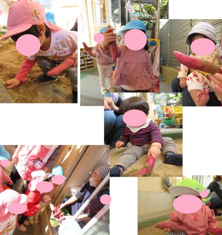 にじ組の子ども達は、チラッと顔を出すお芋に駆け寄っていましたよ。