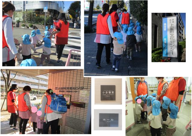 地震の避難訓練をした後、上宮川文化センターまで避難経路を確認しながら歩いて行きました。