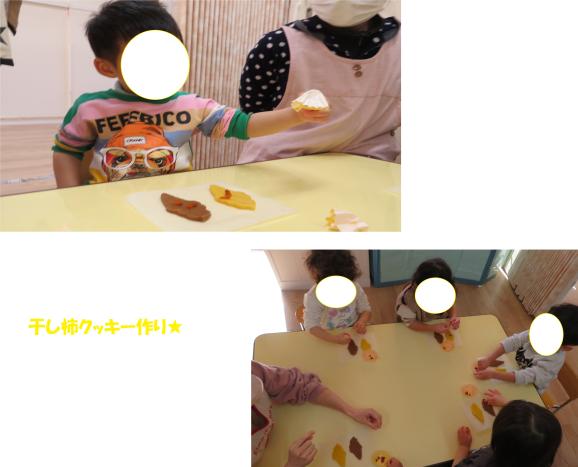 みんなで作った干し柿をクッキーの生地にのせてクッキークッキングをしました!