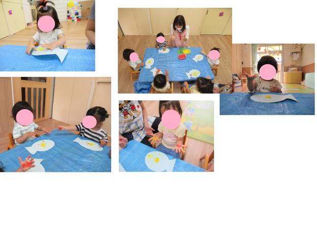 初めは眉間にしわを寄せ触ろうとしなかった子が、周りの様子を見て指先でチョンと触り、次は手の平全体で触りと、徐々に感触を楽しんでいる様子が見られました。