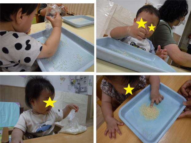 ”やってみよう”と心が誘われて、真似して一緒に投げたり、混ぜたりして全身で感触を楽しんでいましたよ(^^)/