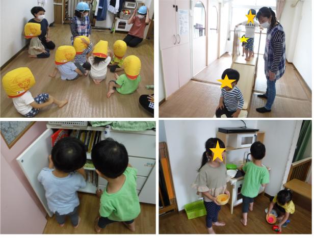 暴風雨警報時の避難訓練☆くま組