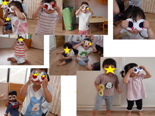 カラフルなかわいいとんぼのめがねを目にあててとんぼに変身!