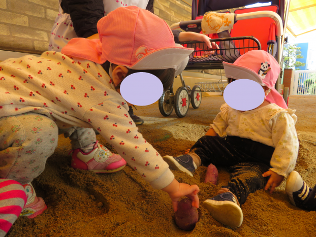砂場で芋ほりを体験しました♪