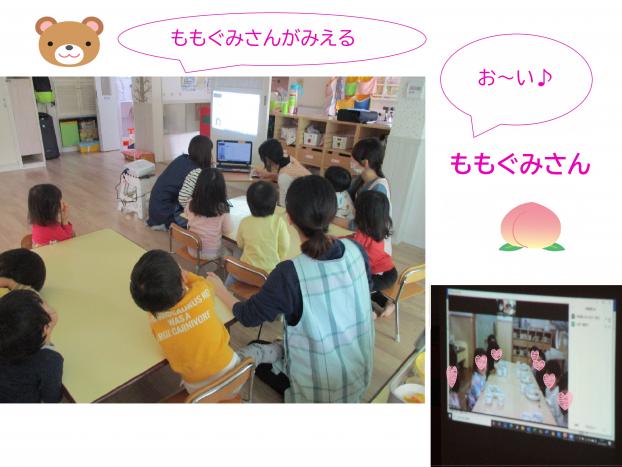はじめての試みで、画面が固まってしまったり、声が届かなかったりハプニングもありましたが、なんとか声も聞こえ「ももぐみさ~ん♪」と、元気な声を届けることができました(*^-^*)