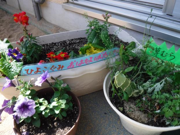 ひよこ組の小さなお花畑と小さな草むらができました。
