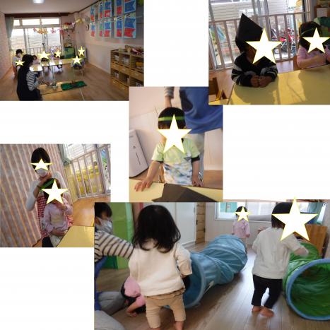 お友だちが出てくるのを覗いてみたり、お友だちを追いかけて一緒にトンネルに入ったりして楽しんでいましたよ♪