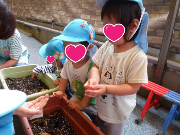 お外に行ったときはみんなで水やりをして目で見て成長を感じたいと思います