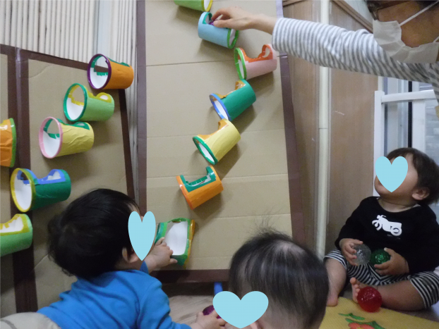 保育士がボールを上から入れようとすると、、、みんな見上げていましたよ。