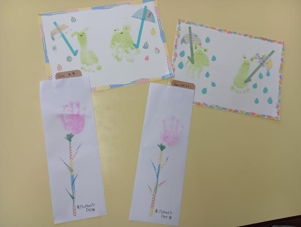 「保育園であそぼ!」の手形足形アートの会に参加してくれたお友だちの作品です(*^-^*)