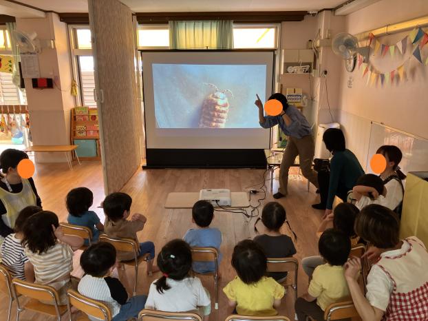 今日は「人と自然の博物館」の方に来ていただいて、ダンゴムシ体験をしました。広場にダンゴムシを探しに行ったり、持ち帰ったダンゴムシを拡大鏡で観察したりしました。ダンゴムシを捕まえる時はお約束通りに優しく持つことが出来ていましたよ!拡大鏡で見ると「めがある!」と普段の観察ではわからなかったことも新たに発見しました☆