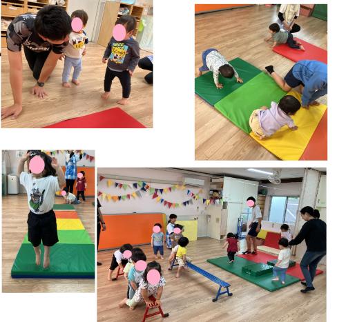 その後お部屋でふれあい遊びや体育遊びなどゆったりと体を動かして遊びました♪