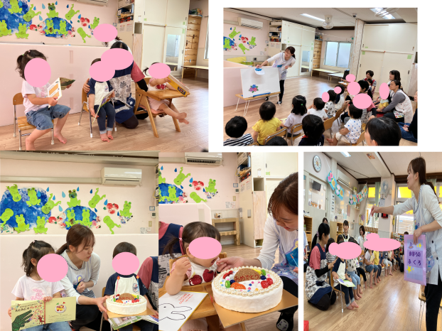 誕生日のお友だちはみんなからの歌のプレゼントと絵本カードをもらって嬉しそうでした。
