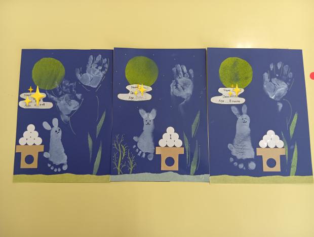 小さいおててと小さいあんよでお月見バージョンの作品を作りました♫