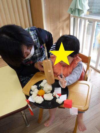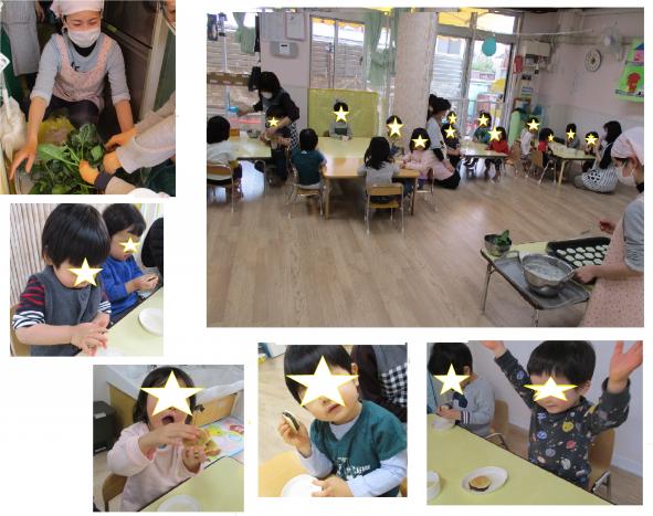 給食で食べたのですが「いいおとするね!」や「おいしい!」とぱくぱく食べる姿も見られました。自分たちで作った野菜はまた特別おいしいですね♪