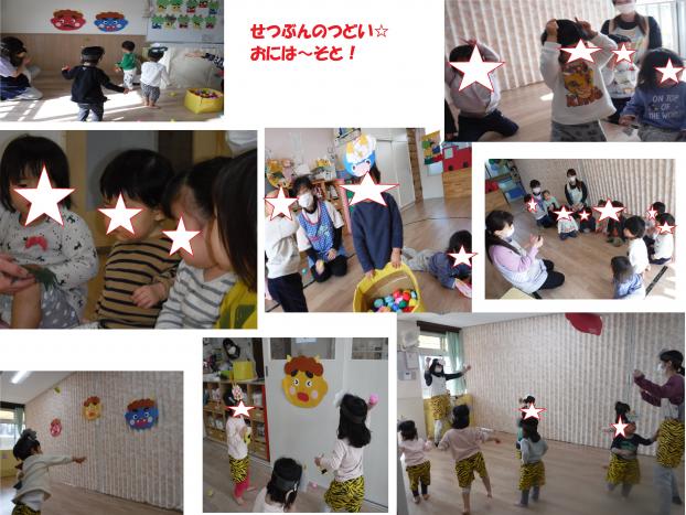 鬼に変身して「おには~そと!」と元気いっぱいまめまき遊びもしました。