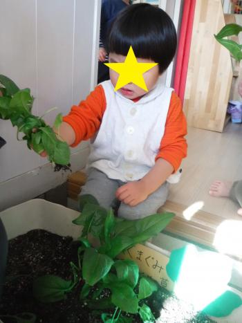 園庭で遊ぶたびにぐんぐん大きくなるほうれん草。