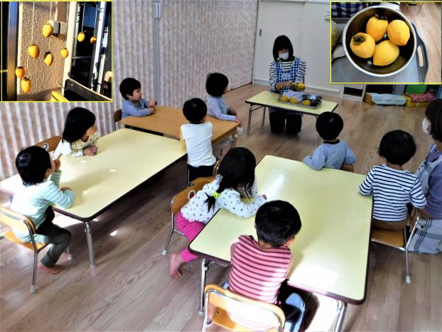 ひよこぐみの子どもたちに柿を目の前に見せると、