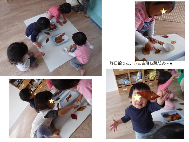 赤や黄色や茶色、穴あき葉っぱに、小さなあかちゃんはっぱ!