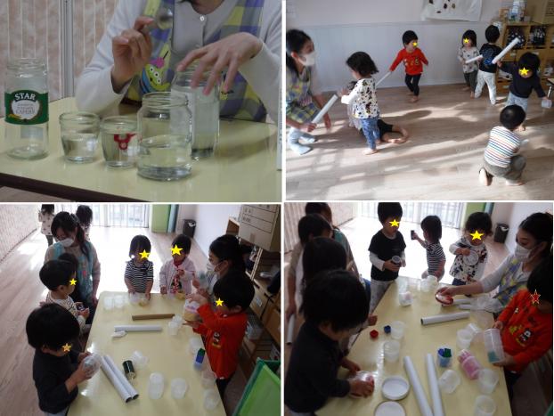 水を入れた瓶で音階を作った音をきいたりしました。
