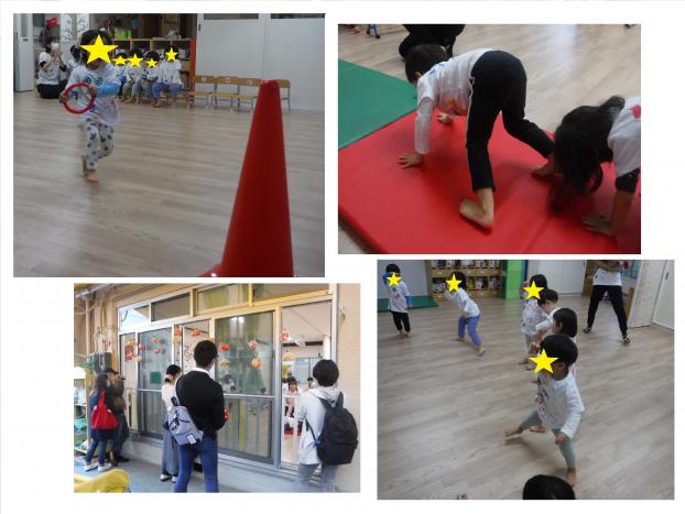 照れてしまうお友だちもいまいたが、張り切って体育遊びをしていましたよ!