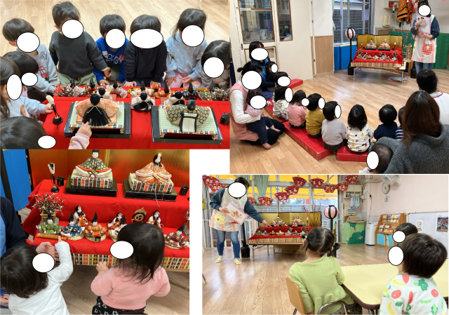 おひなさまを近くで見て、「かわいい」「これなあに?」と興味津々な姿もありましたよ。