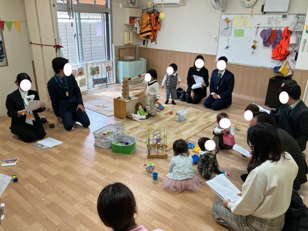 参観では、リズム遊びとおままごとをし、お友だち同士の関わりを見てもらいました。