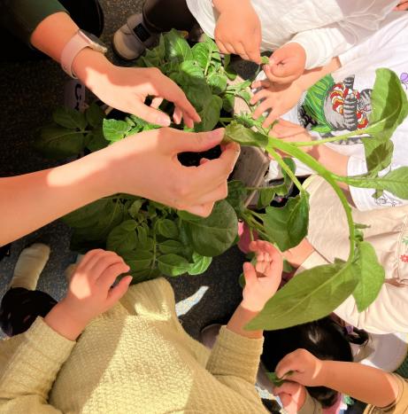 今日は「おおきくなあれ!」と言いながら”芽かき”をしました