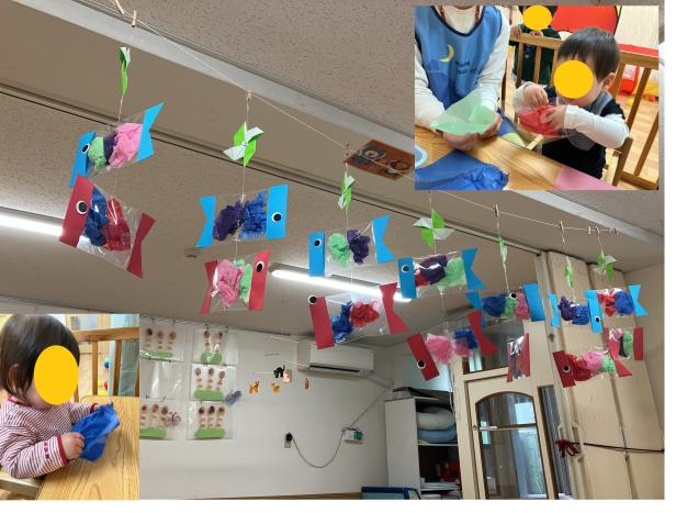 色とりどりのこいのぼりがお部屋をおよいでいます☆